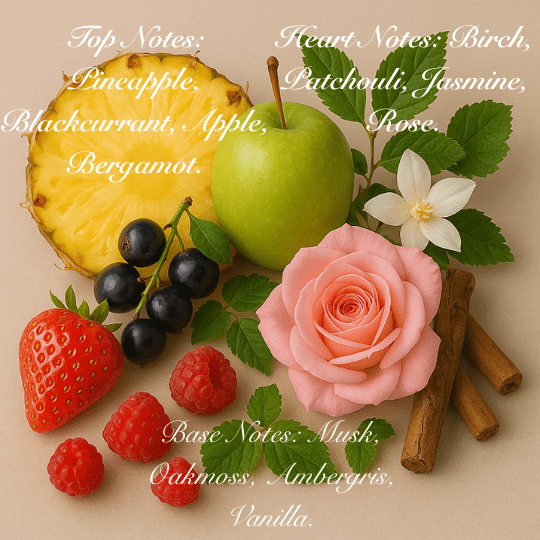 Top Notes: Pineapple, Blackcurrant, Apple, Bergamot.